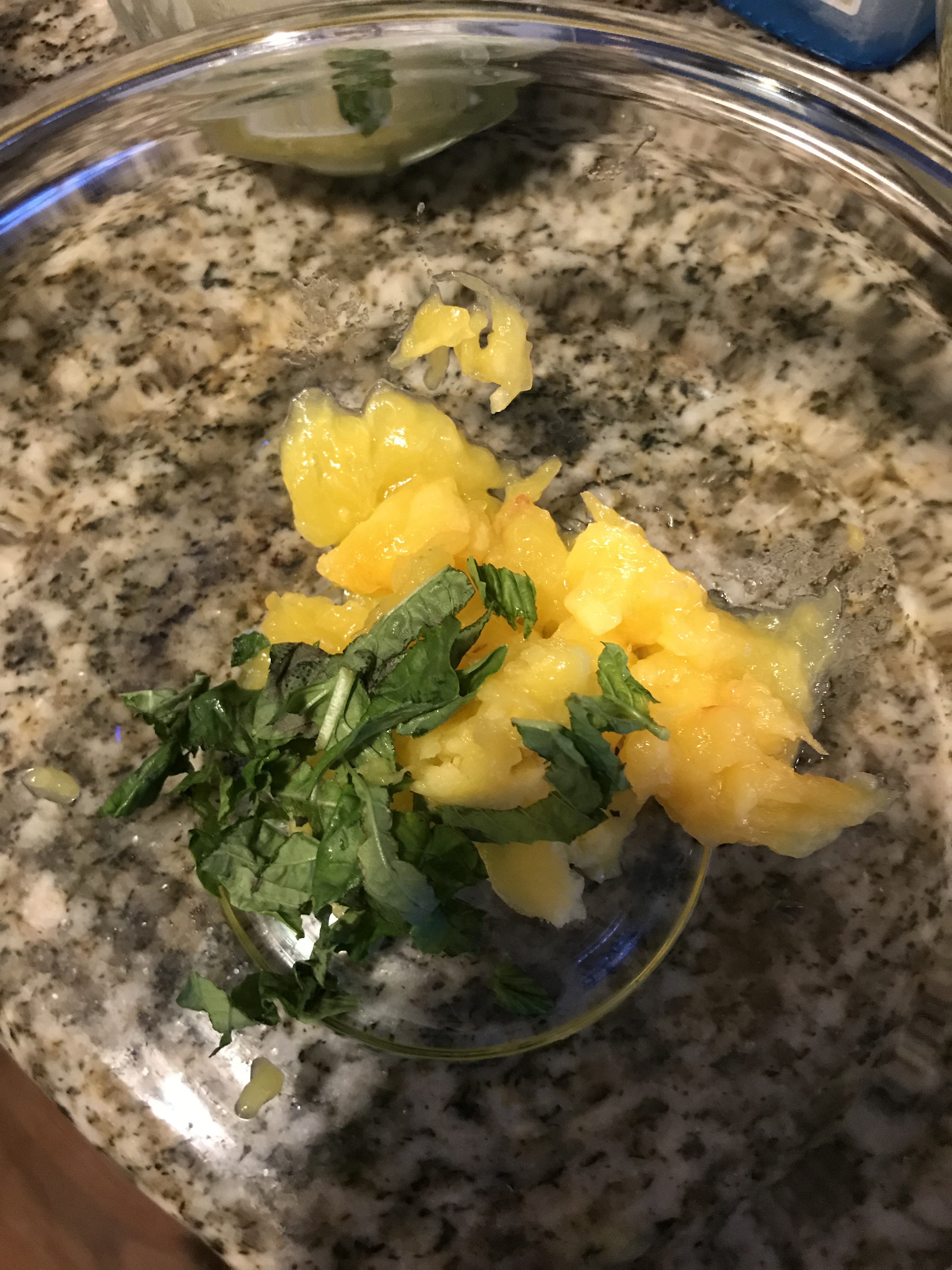 I didn’t have any peaches, but I had a few nectarines. I used one nectarine per serving. I also didn’t have any mint, but I did have some basil, so I used a few leaves of that instead. I’d be curious to try a lemon basil ginger smash next time!