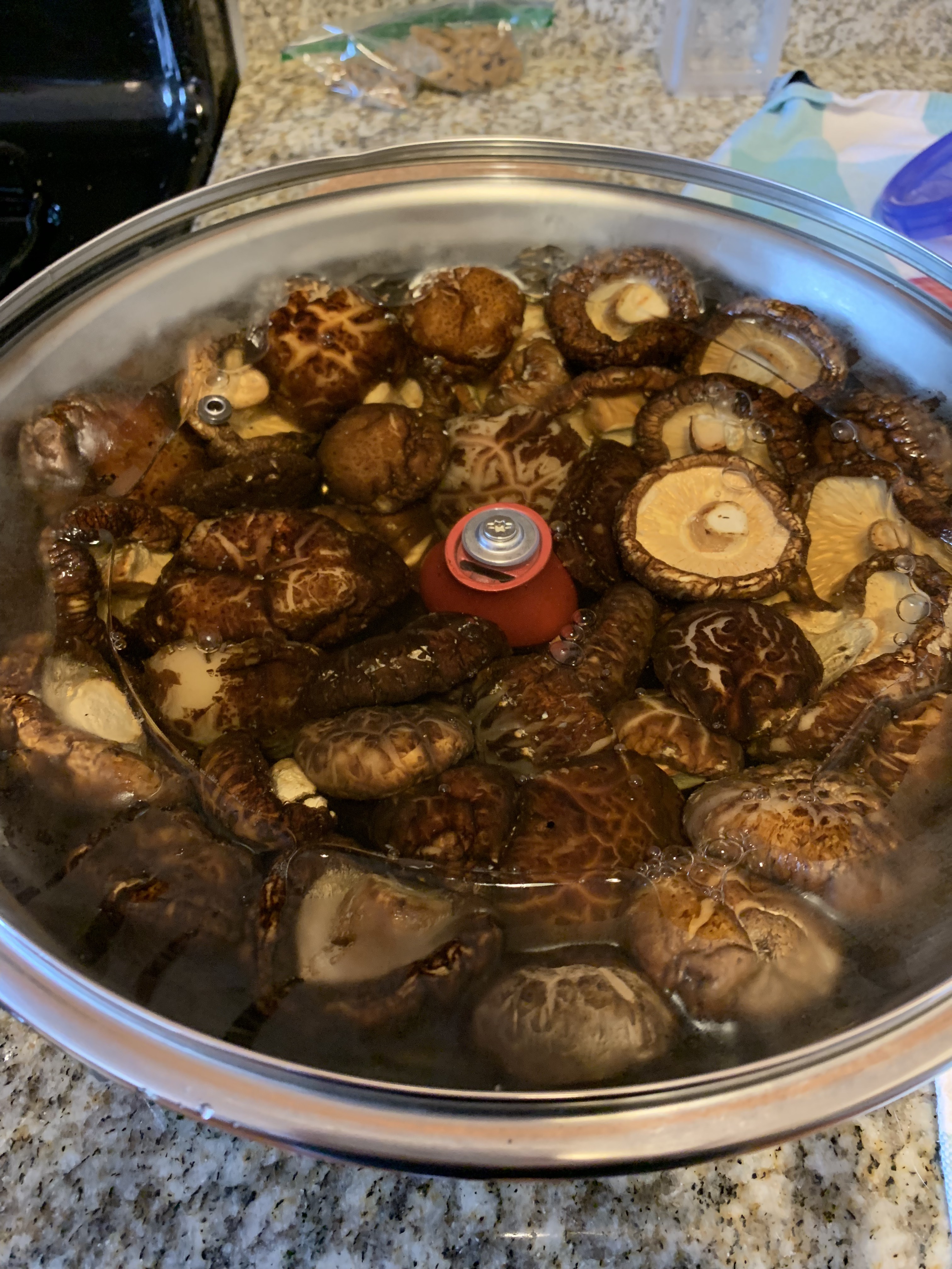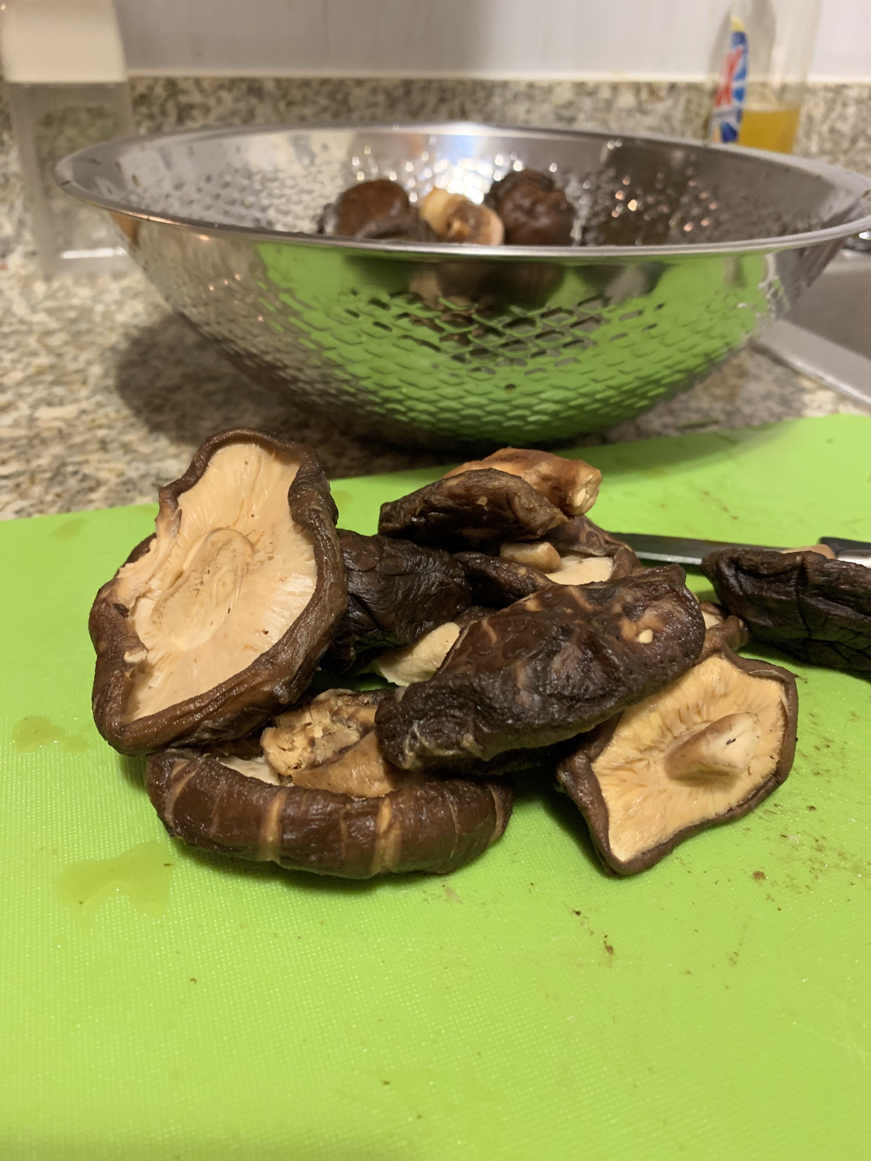 - 1 bag of dried shiitaki mushrooms. I like shiitaki for their nutty taste and meaty texture. (This sounds very dirty.)