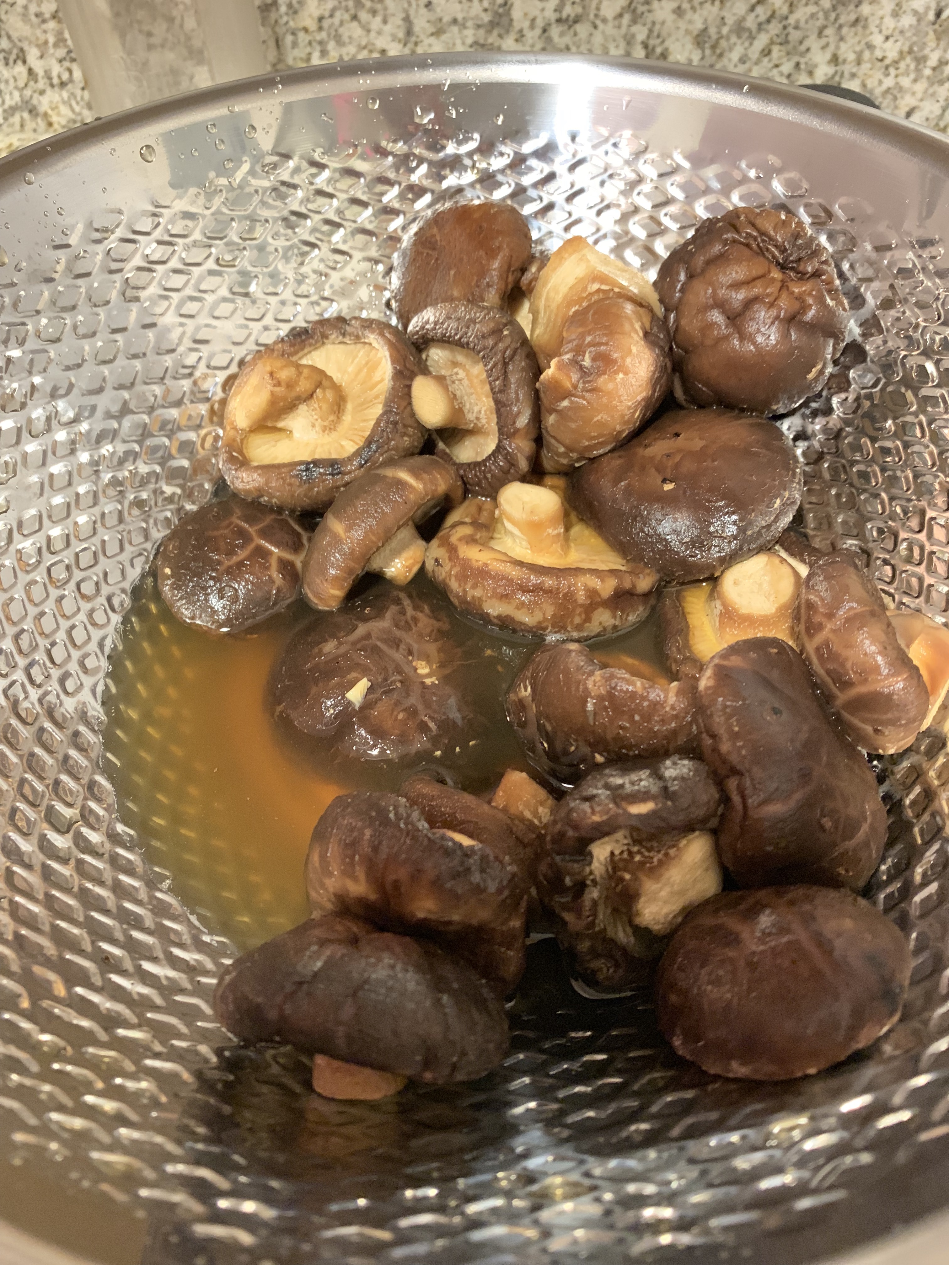 - Submerge mushrooms in lukewarm water for 2-3 hours. The instructions only say 30 minutes, but I’d recommend soaking them for longer to ensure they’re not too chewy. My mom usually soaks them overnight.