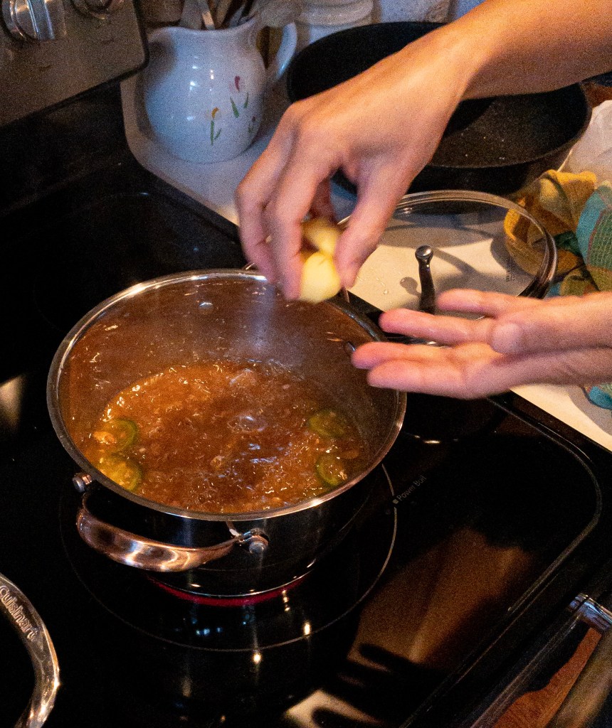 13. Once the broth has cooked for 15-20 minutes, take out all the ingredients in the pot and discard them.
