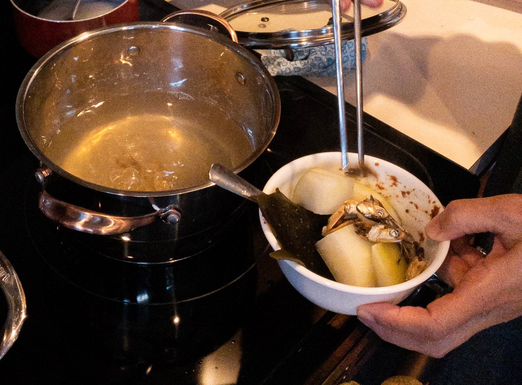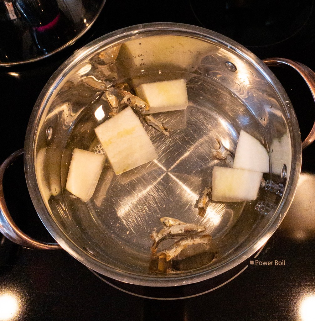7. As you prepare the broth, start preparing the ingredients that make this a jjigae (stew).