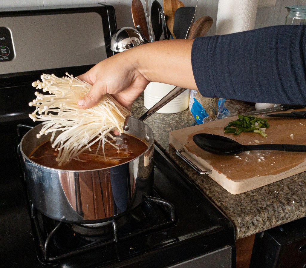 - 1/3 bag of enoki mushroom (I usually get a 7.5 oz bag)