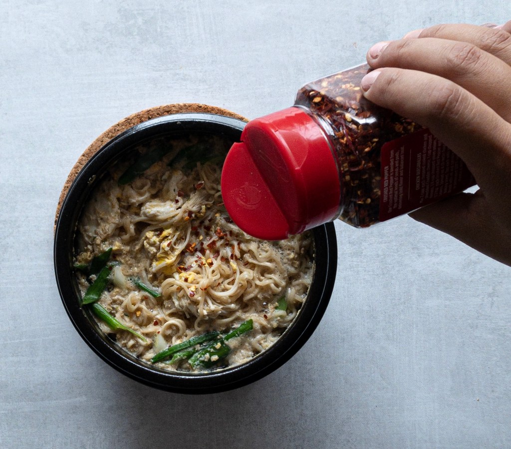 - Then, add the noodles. DO NOT CRUSH THE NOODLES!!