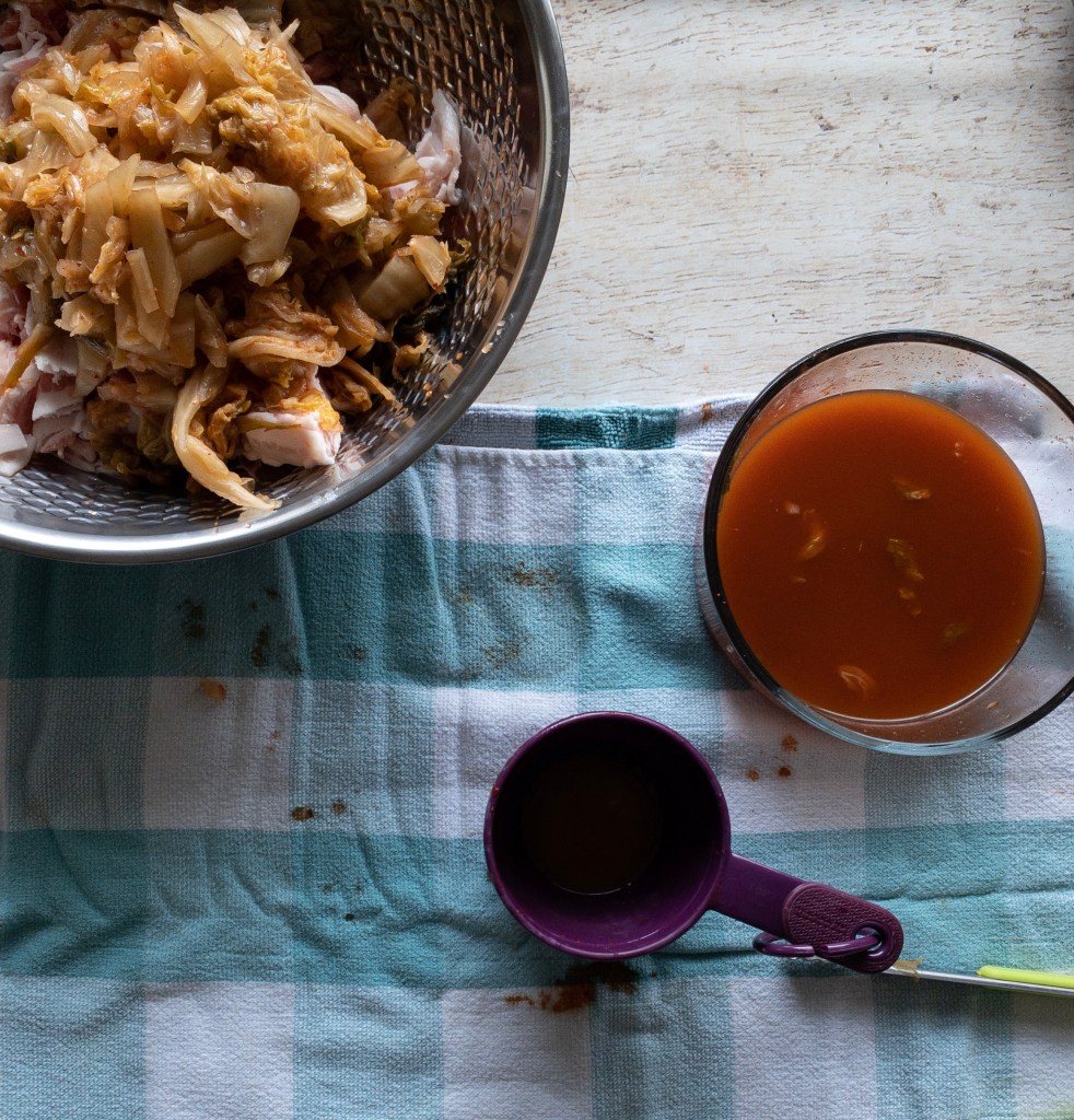 - 2.5 cups of kimchi 국물 (gugmul)/juice(?)/liquid