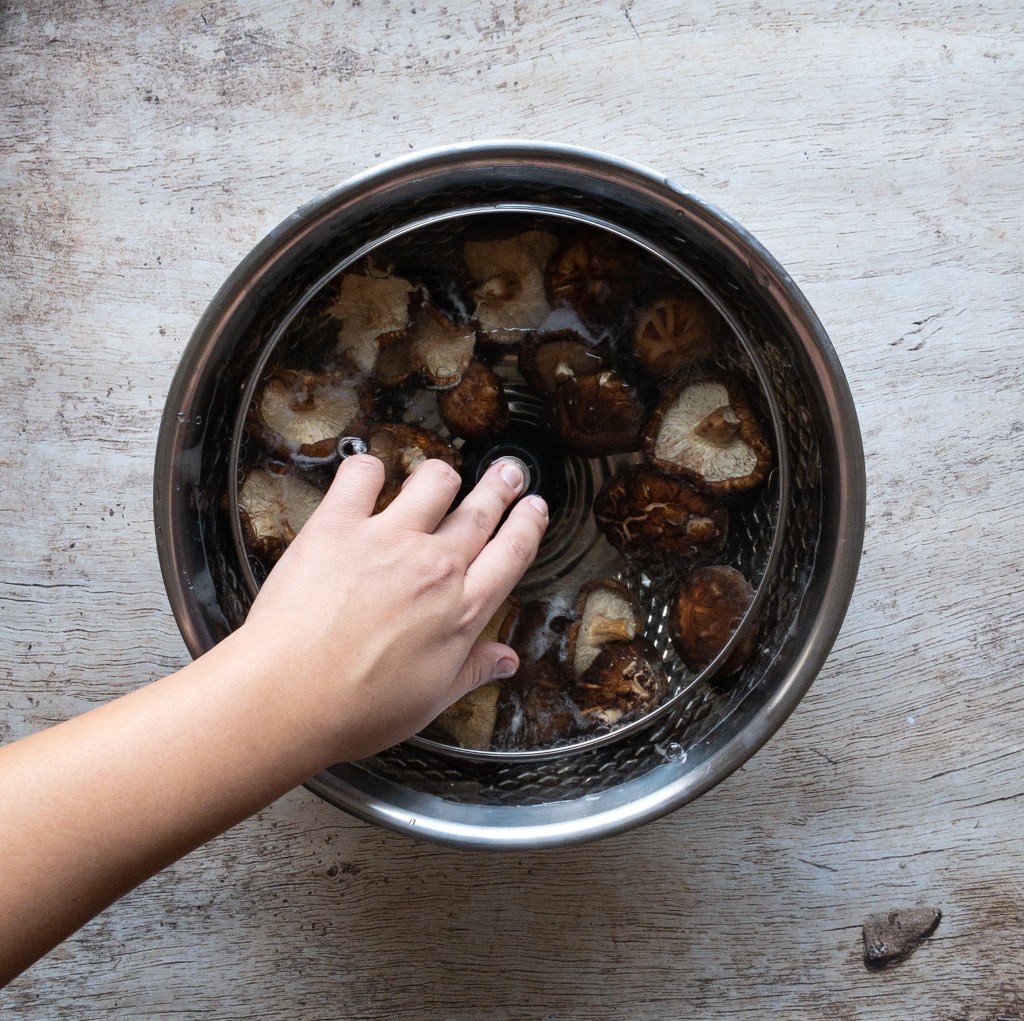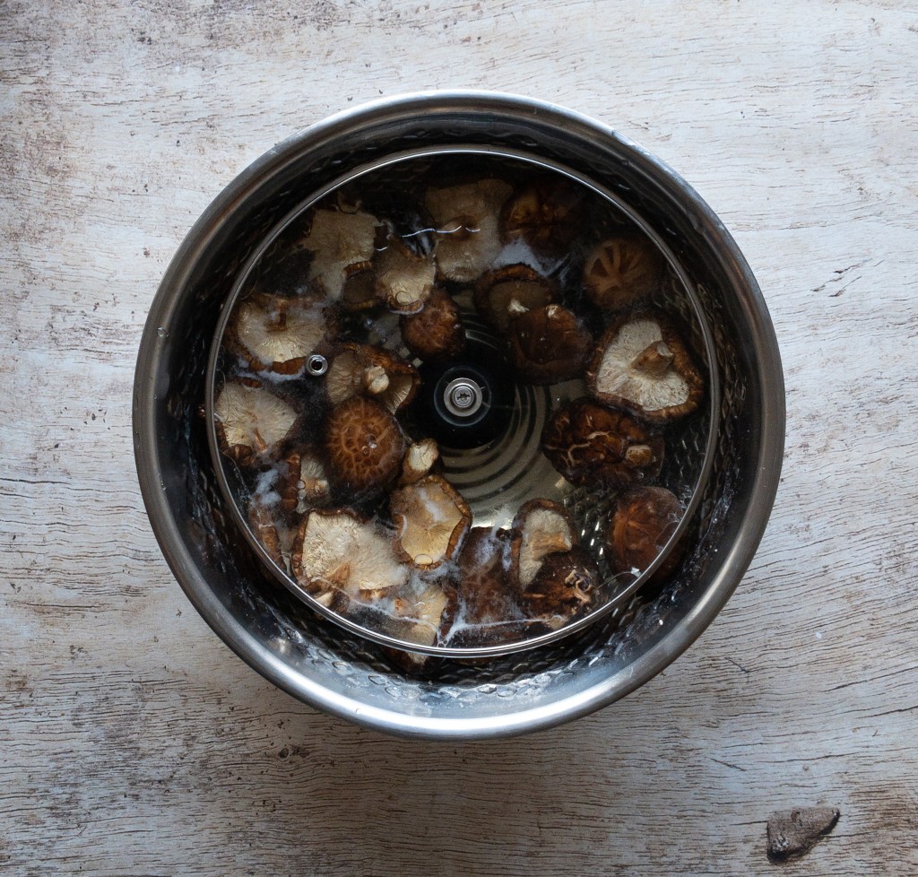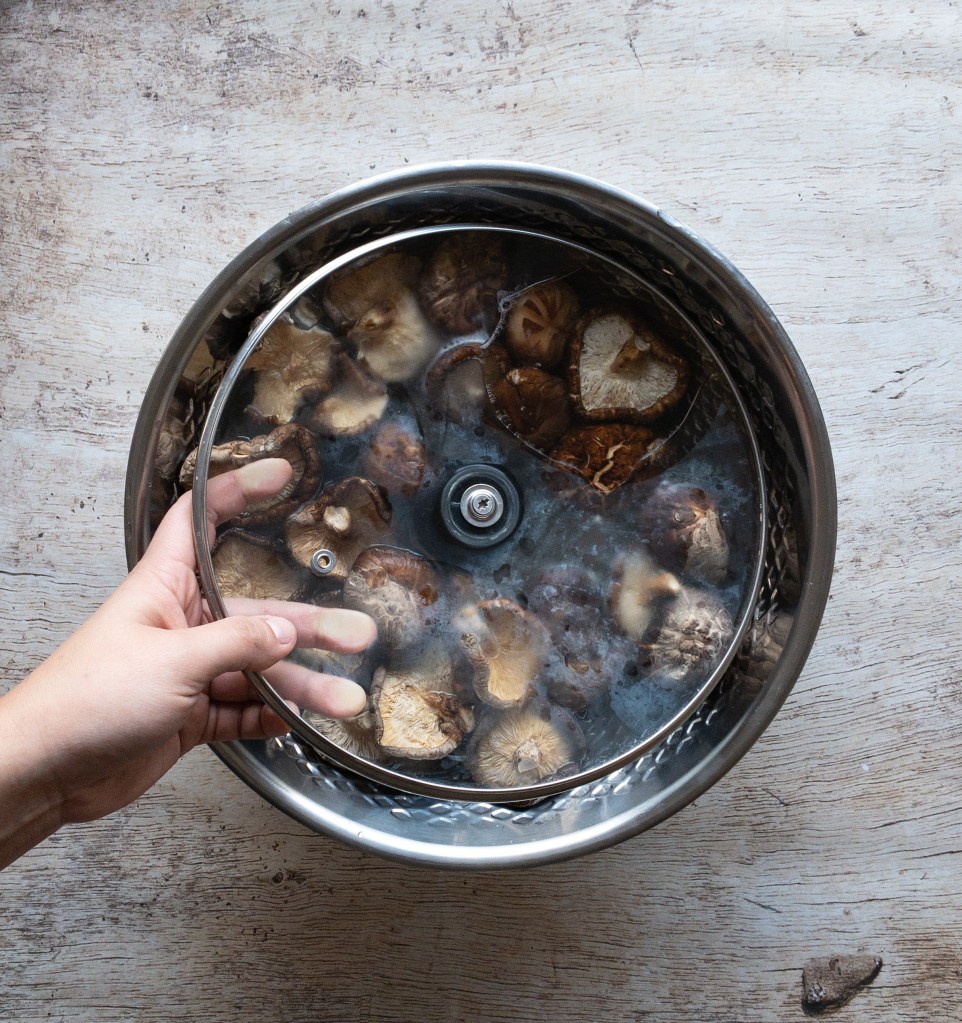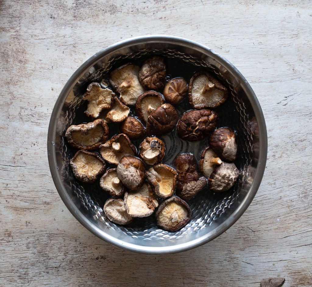 - Soak the dried shiitake mushrooms for about 2 hours or until they’re soft and pliable