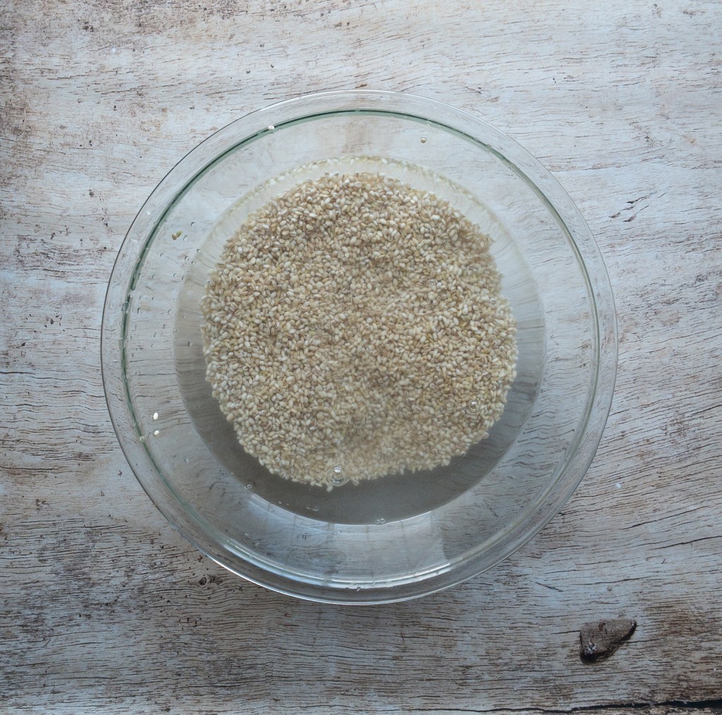 - Then, add sesame seeds and red pepper powder (again, the amount depends on your preference).