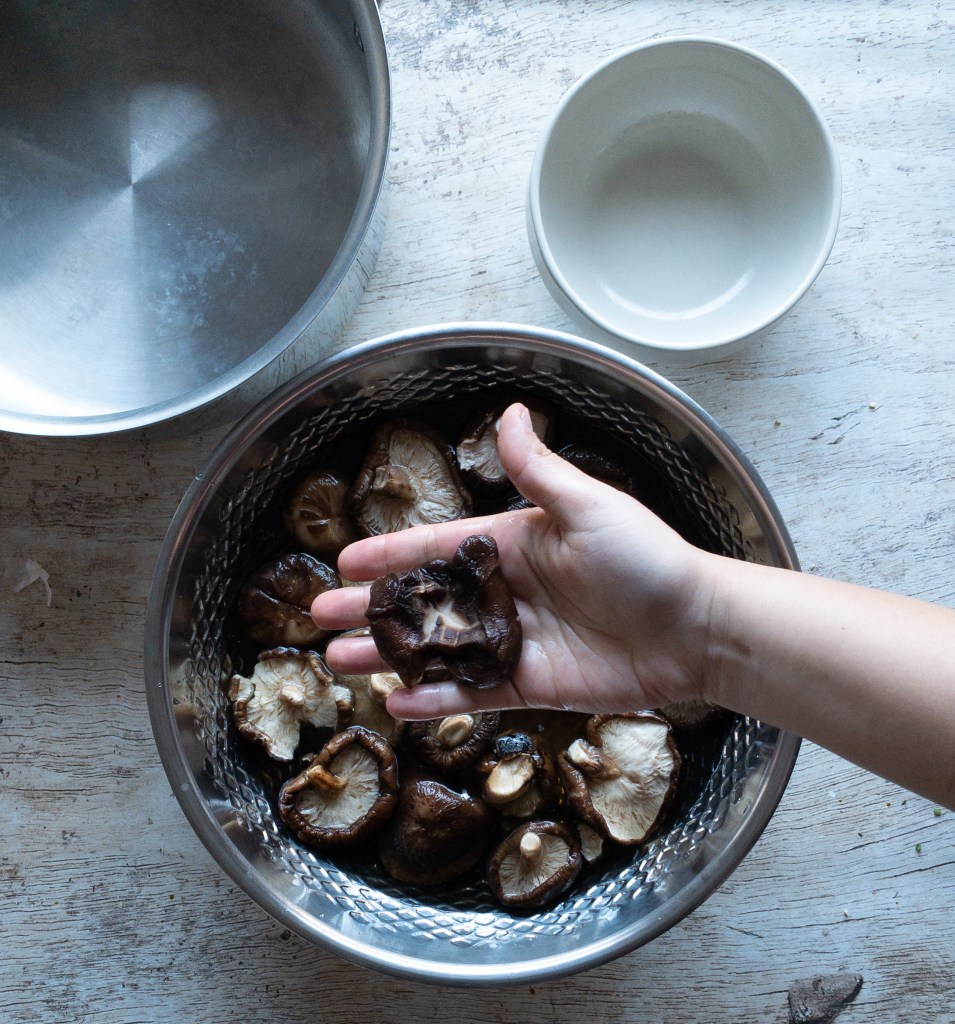 - 8 large, dried shitake mushroom (we used dried mushroom to make sure the mushroom has some body and chew after being cooked)