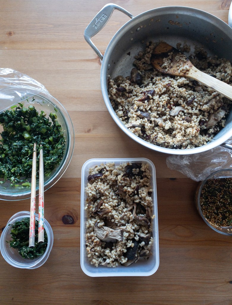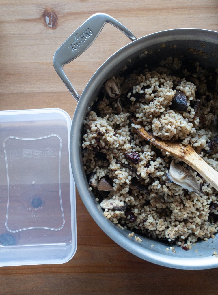 - When I made this on my own in my apartment, I let the mushroom rice sit in the pot overnight. I then scooped half of it into a plastic container to take to my mom later that day.